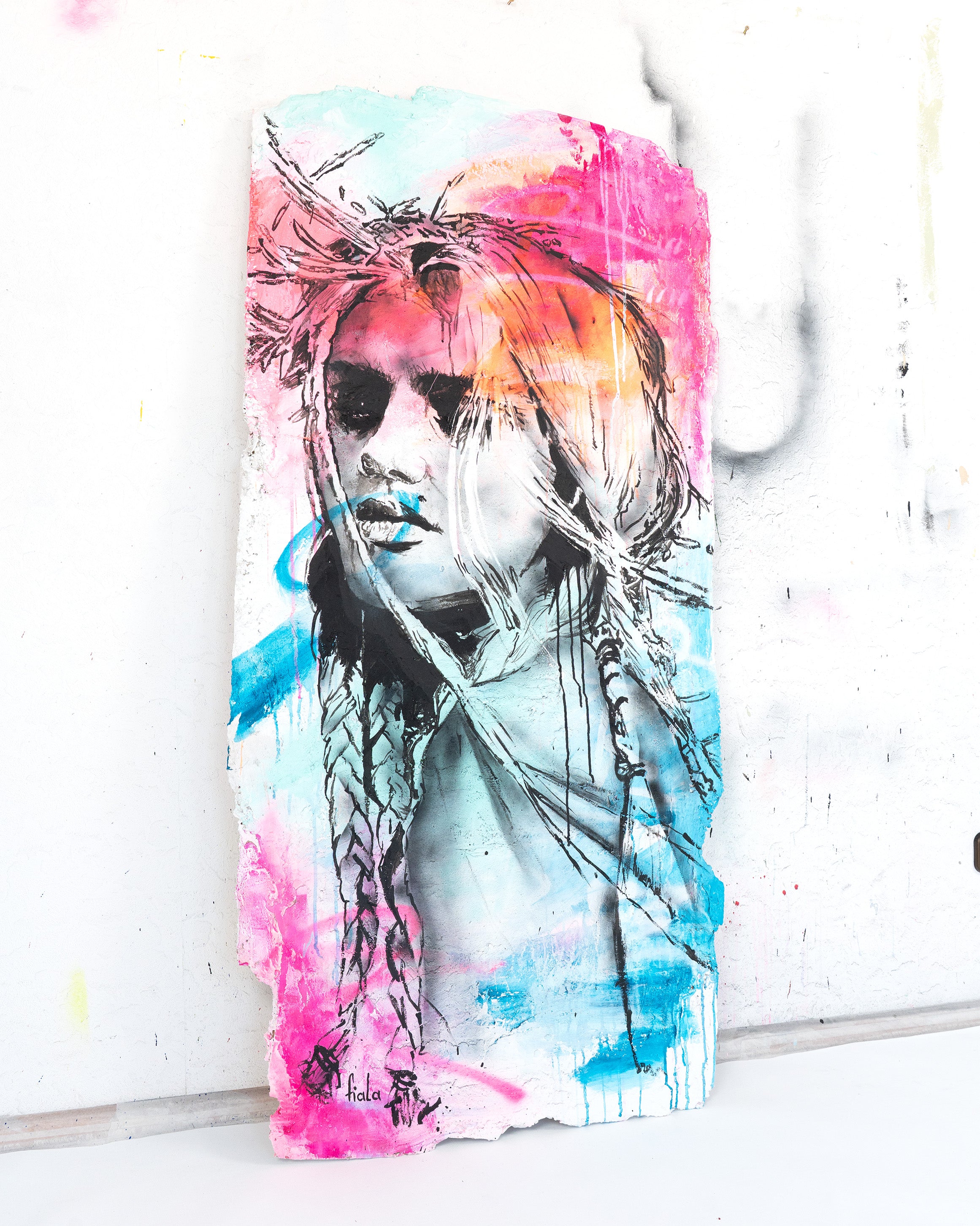 The process itself is one of controlled chaos, where the energy of the break is channeled into a moment of creation. The interplay between the raw texture of the concrete and the fluidity of paint creates a visual tension, drawing attention to the contrasts inherent in our own experiences—how we often have to break down old structures to build something new. The wall, though cracked and fractured, becomes an emblem of resilience, of holding on while simultaneously letting go.